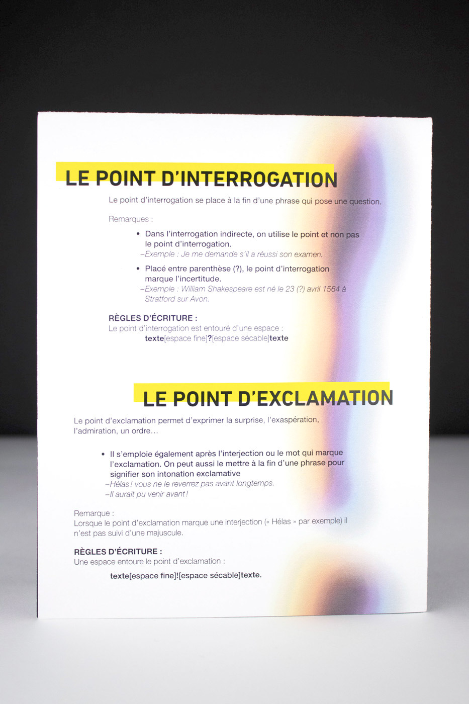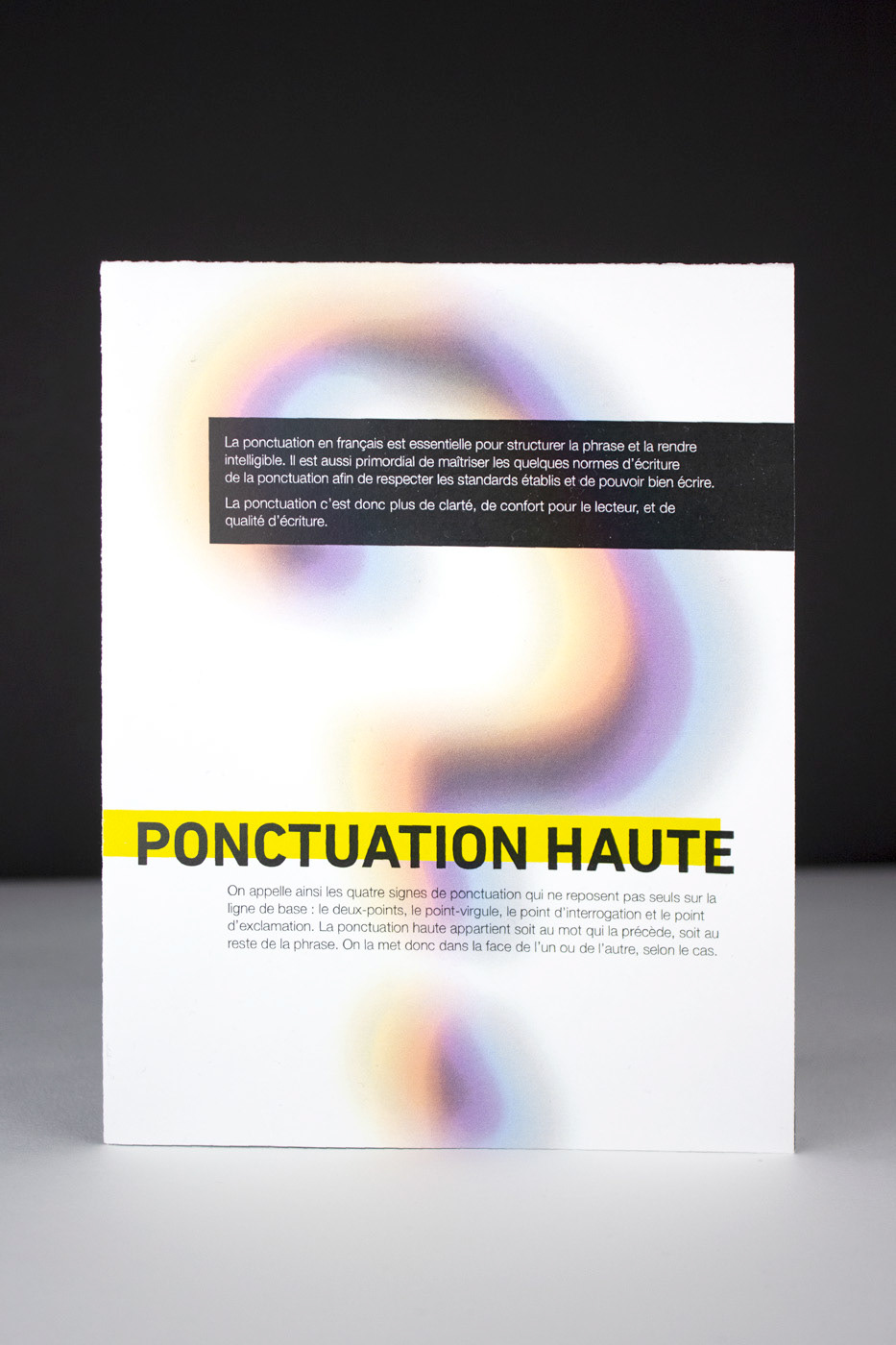 Dépliant et affiche sur l’utilisation typographique de la ponctuation haute.